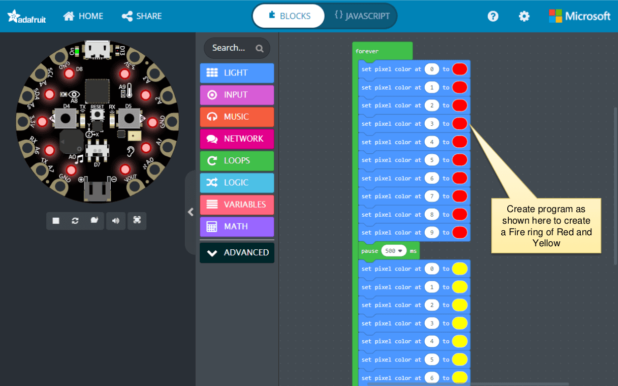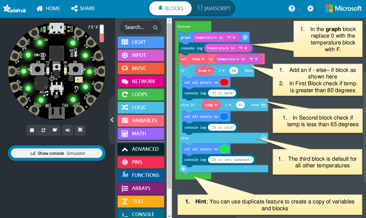 Let’s try an exercise on lighting up rings based on whether it HOT, COLD or comfortable.