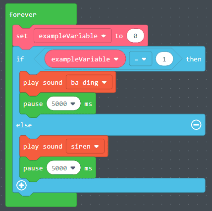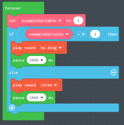 - In the example on the left the code inside the “else” statement will run because the condition of “does exampleVariable = 1” is not met.
