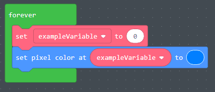- Drag the exampleVariable onto the “set pixel color” function.