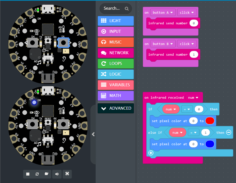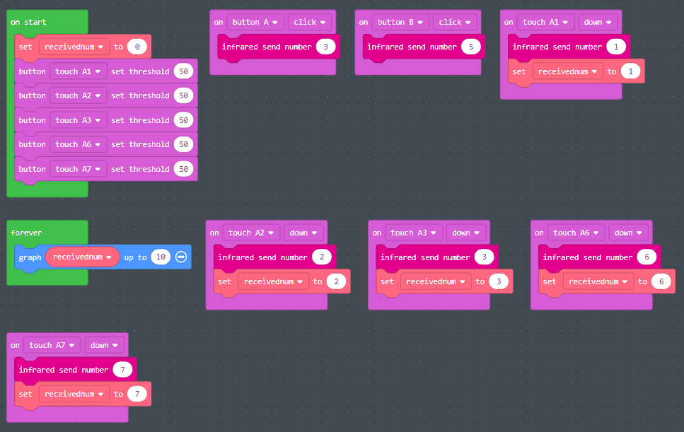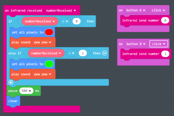 - We need to build the logic inside the “on infrared received” function to perform different actions based on what number it receives