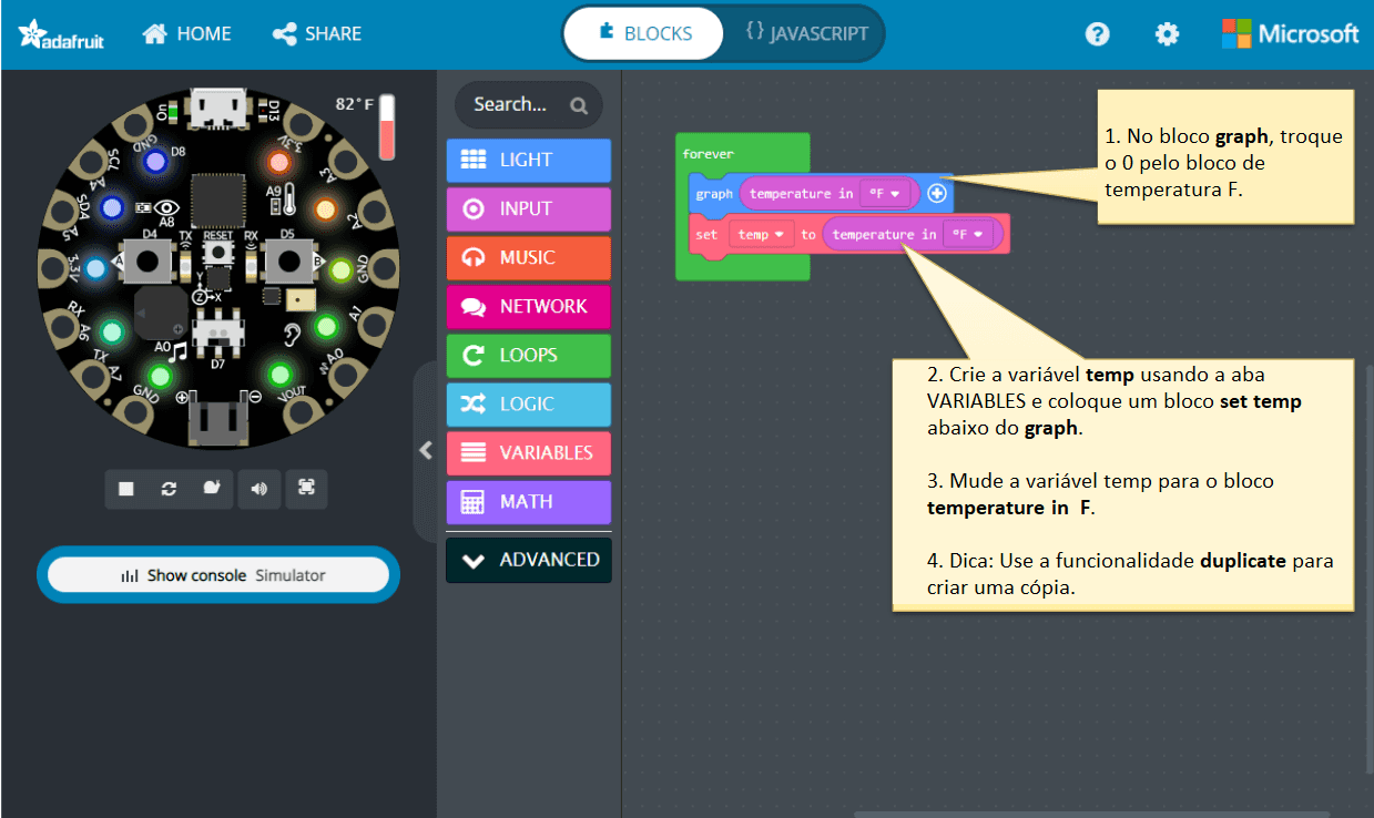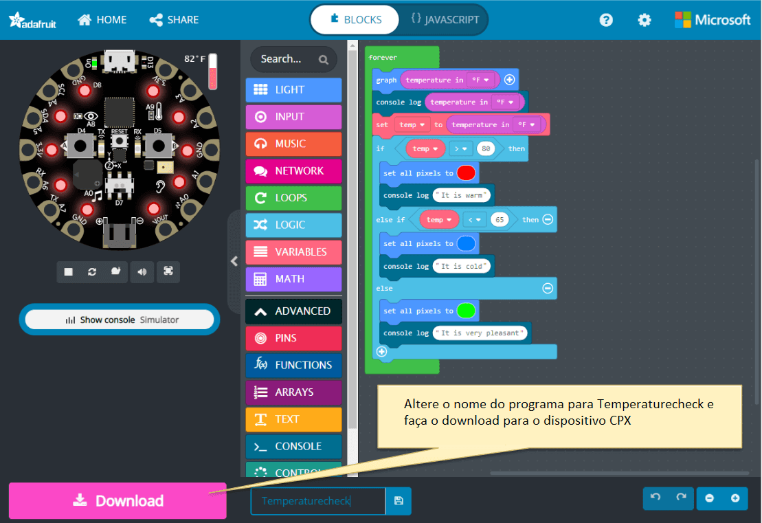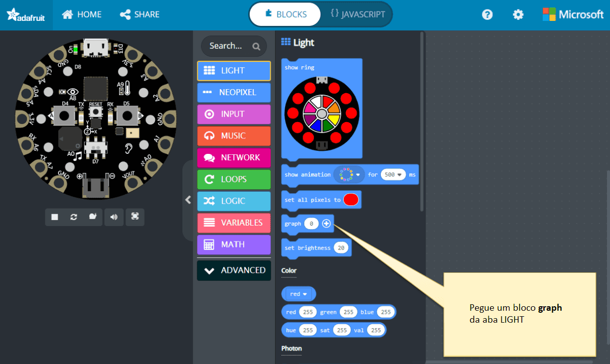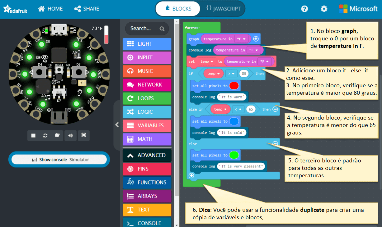 Projeto: Tarefa para iluminar pixels de números ÍMPARES e pixels de números pares em um loop contínuo usando blocos for